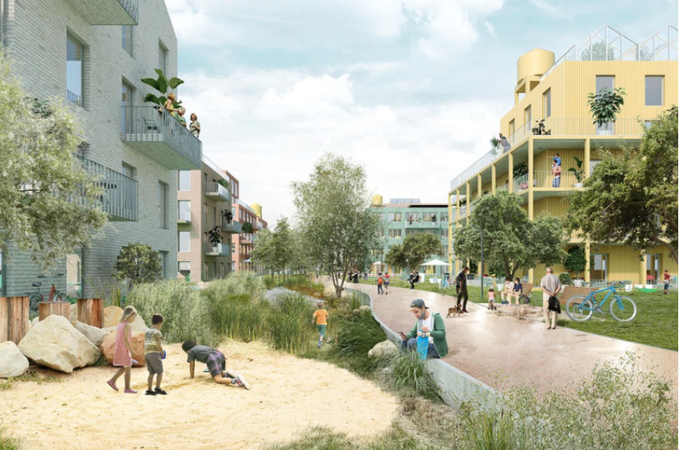 Centrálním bodem je znovu odkrytý potok, který po odtrubnění z hlubin místní země přirozeně zchladí novou městskou čtvrt a poslouží jako závlaha pro bohatou místní zeleň. Zeleň poskytuje podporu pro řešení budoucích výzev spojených s klimatickou změnou. Na okolích územích lze hovořit o možnostech nového zemědělského parku nabízejícího obyvatelům blízkého i vzdálenějšího okolí možnost pro relaxaci, učení, zábavu a trávení volného času. Samozřejmostí je také nová prostupnost oblasti, zdůrazňující bezmotorové způsoby dopravy. Centrální prostranství čtvrti budou řešena bez tranzitní dopravy s důrazem na bezpečnost lidí ve veřejném prostoru, především pak dětí z místních vzdělávacích institucí.